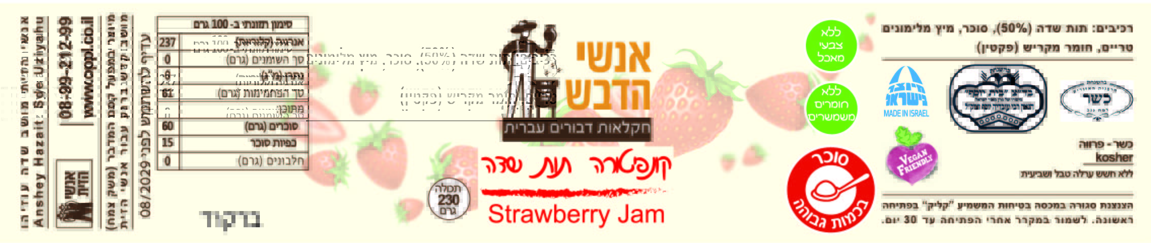 תות שדה(50%), סוכר, לימון סחוט, חומר מקריש (פקטין).